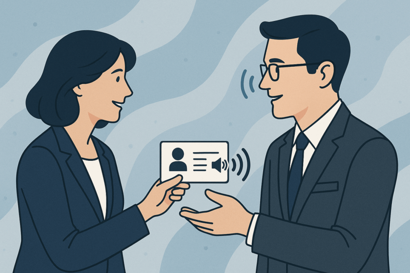 名刺といえば紙に名前や連絡先が印刷されたもの、というのがこれまでの常識でした。しかし今、名刺のあり方に革命が起きつつあります。「声で語る名刺」=音声名刺が注目され、個性や想いをダイレクトに伝える新しい自己紹介の形として広まり始めています。この記事では、音声名刺とは何か、どんなメリットがあるのか、そして導入方法について詳しく解説します。
