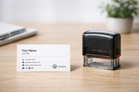 名刺用スタンプとは 名刺用スタンプとは、名刺に追加情報を素早く押せるように設計された小型スタンプのことです。会社情報や電話番号、SNSアカウント、キャッチコピー、キャンペーン情報などを名刺に後から付け足す際に利用され、名...